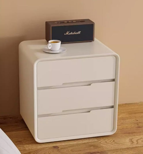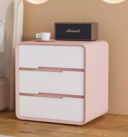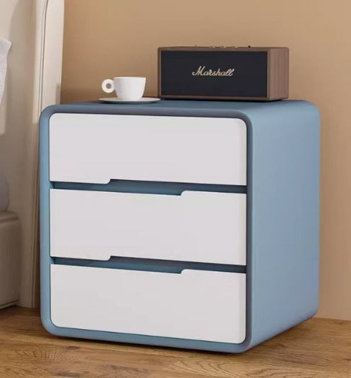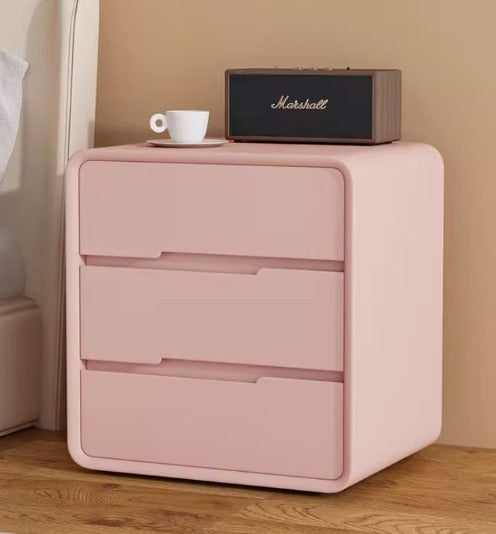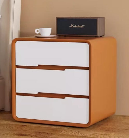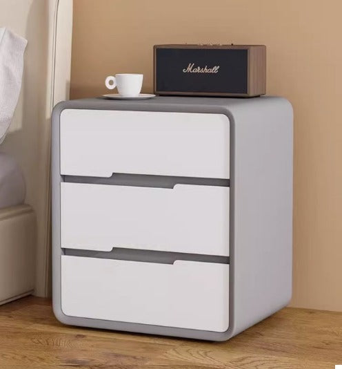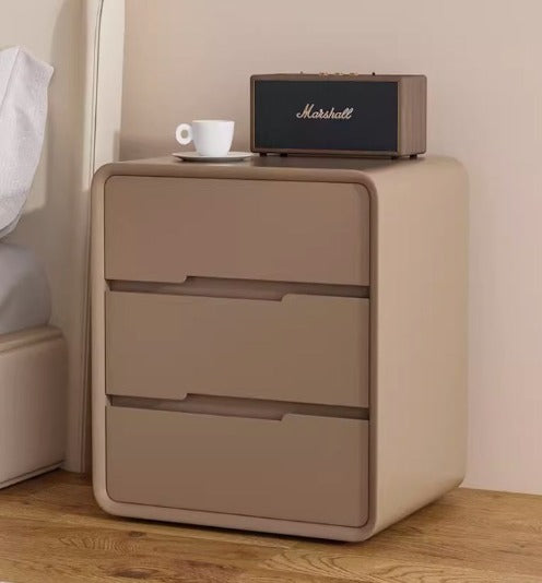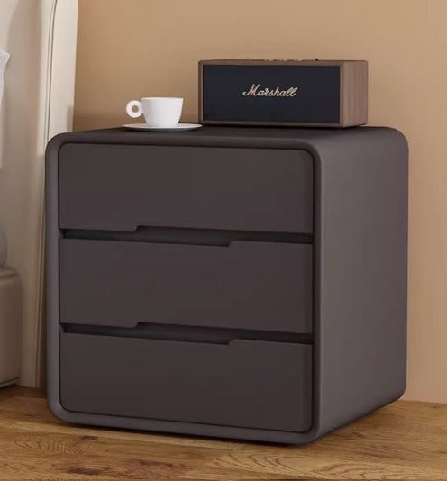 [A29] Minimalist Solid Wood Leather Bedside Table with Multi Drawer