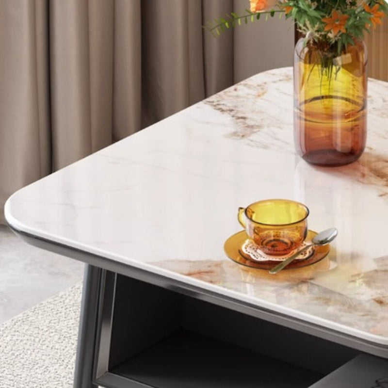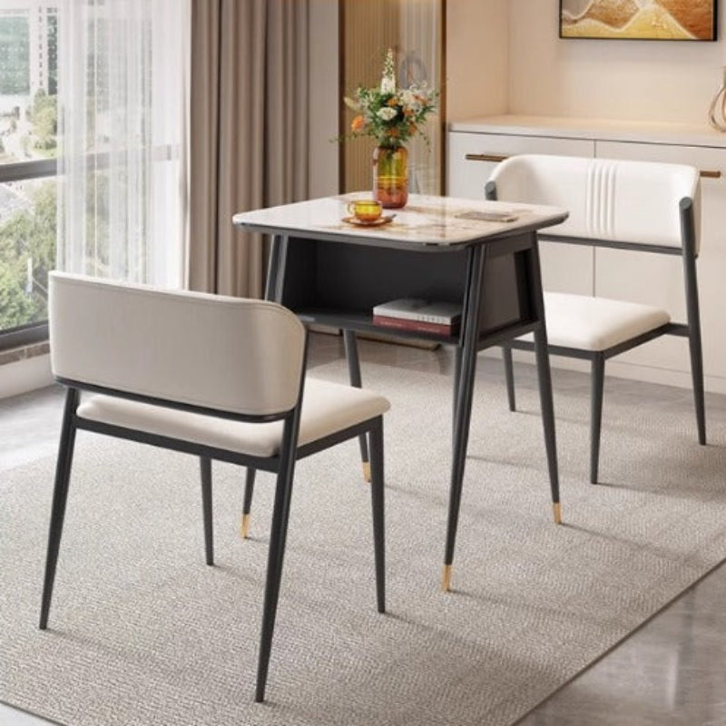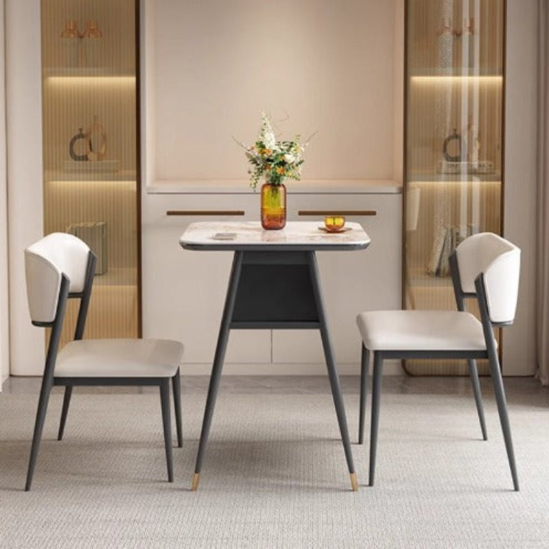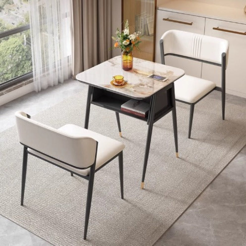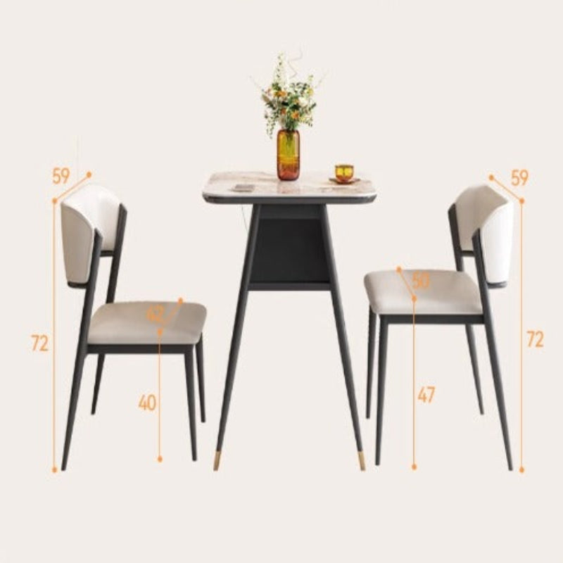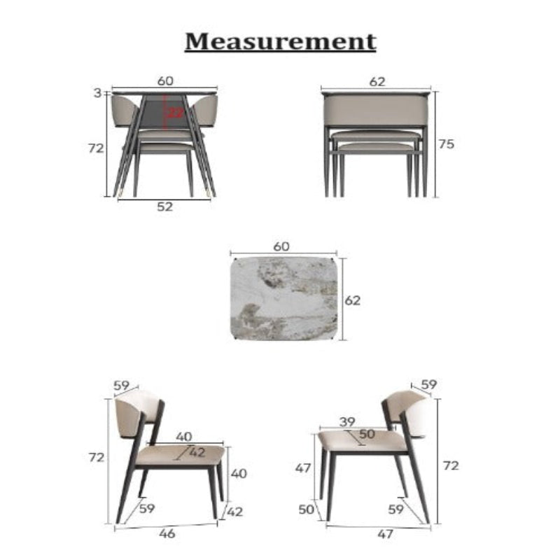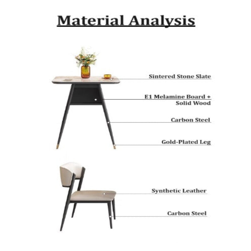 - Material: Table: Sintered Stone Slate + Carbon Steel + E1 Melamine Board + Solid Wood / Chair: Synthetic Leather + Carbon Steel