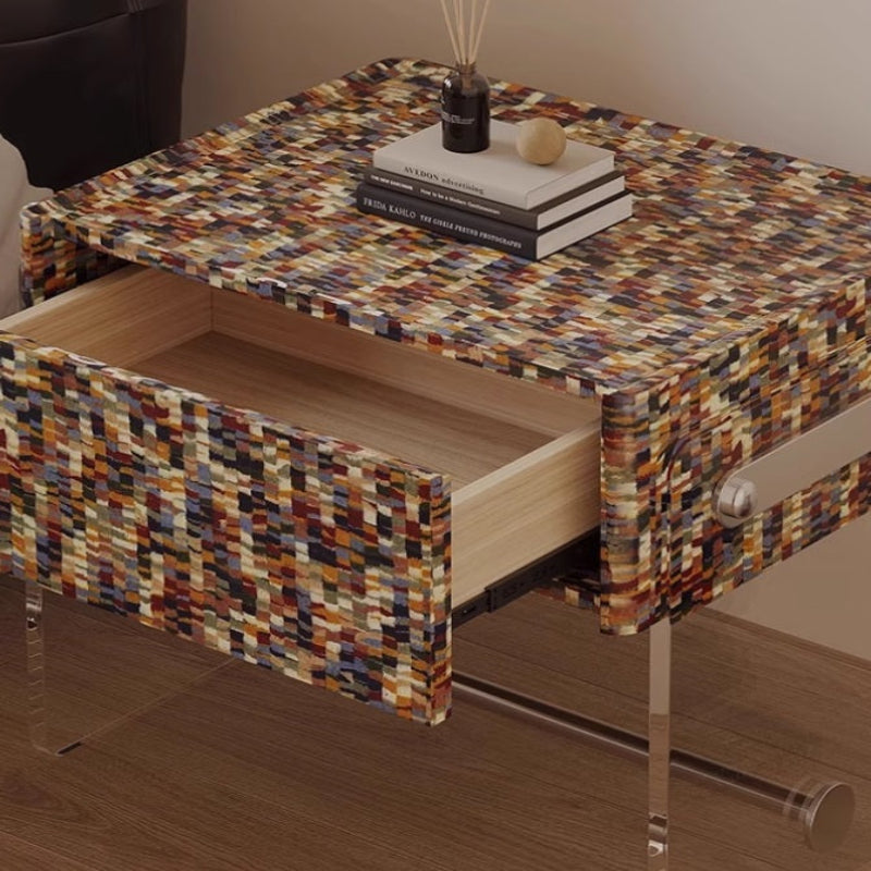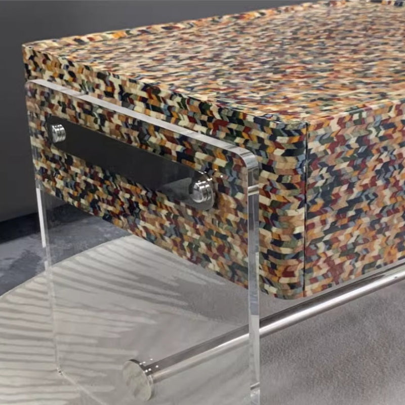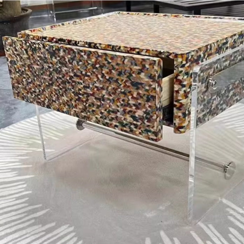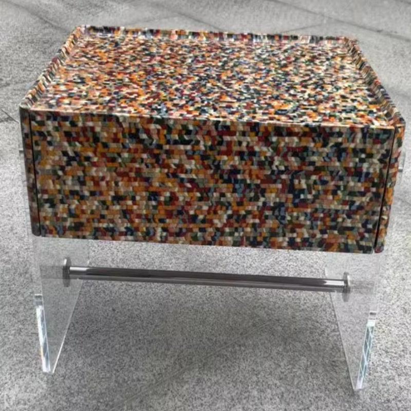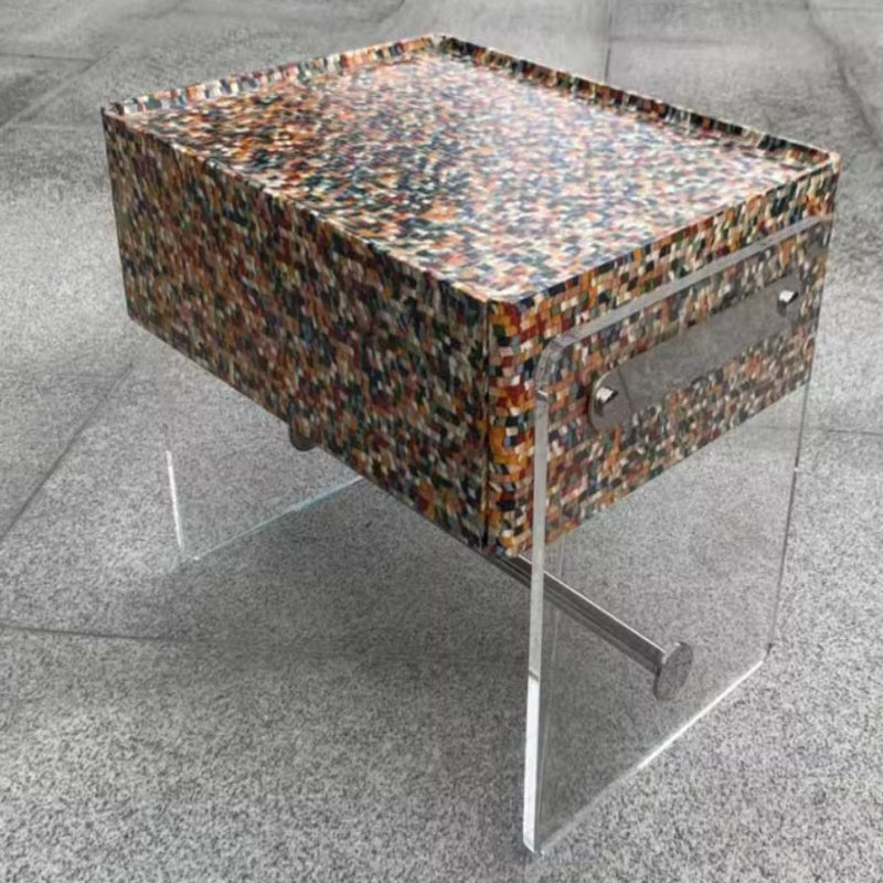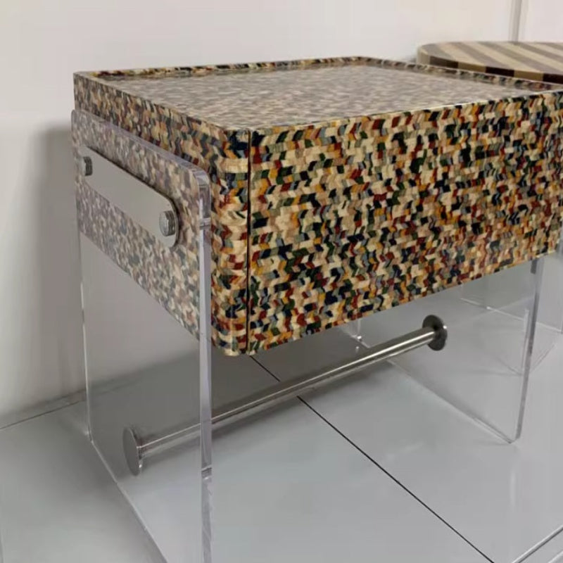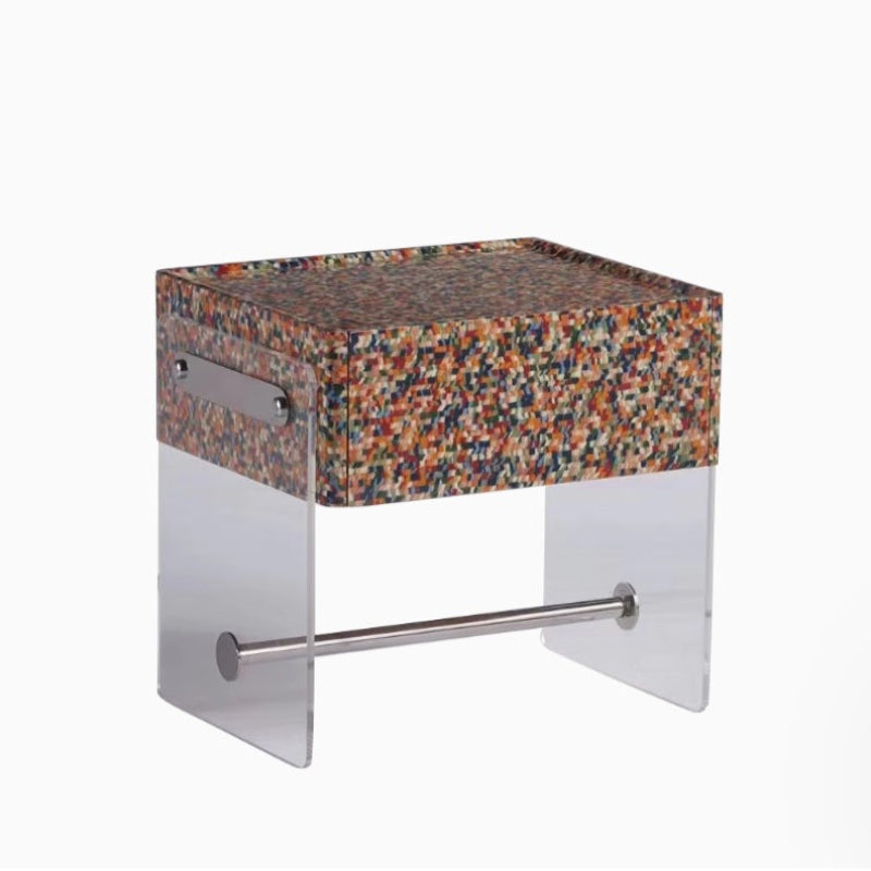 Elevate your bedroom with this Mosaic Acrylic Bedside Table from Nestcraftsg, designed in a light luxury style that blends elegance with functionality. Featuring a clear, high-quality acrylic structure, this bedside table offers both visual appeal and practical storage. Its sleek, contemporary form adds a touch of high-end artistic flair, making it perfect for modern interiors. Use it as a bedside table, side table, or stylish storage unit to organize your essentials while enhancing your space.