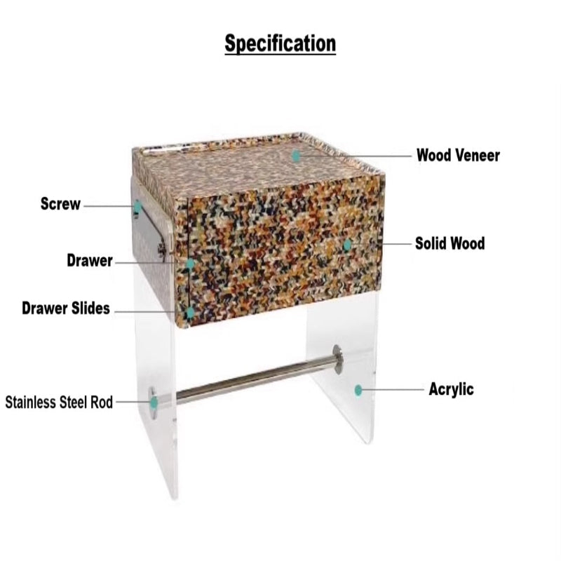 Material: Solid Wood + Acrylic + Drawer Slides + Wood Veneer