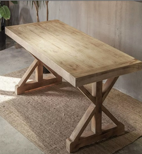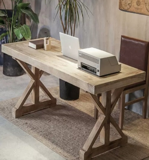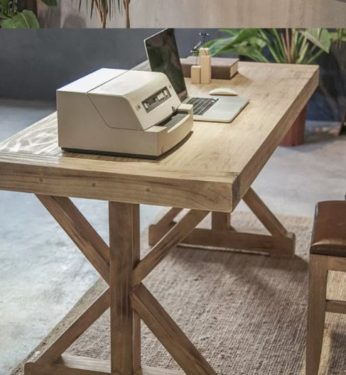 Elevate your space with this versatile American loft-style solid wood table. Whether for dining, office work, or meetings, its retro-minimalist design suits any setting. Durable and stylish, it seamlessly combines functionality with a touch of vintage charm.