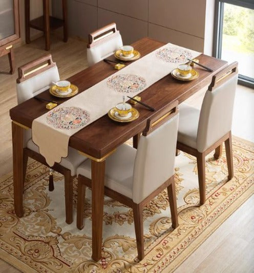Immerse yourself in modern elegance with our Walnut Dining Table. This minimalist ensemble adds a touch of sophistication to your dining room, creating an inviting atmosphere for memorable experiences. Elevate your home with this refined collection, where craftsmanship meets contemporary style for an exceptional dining setting.