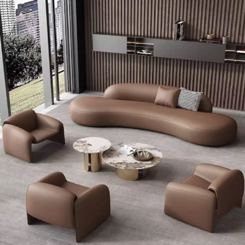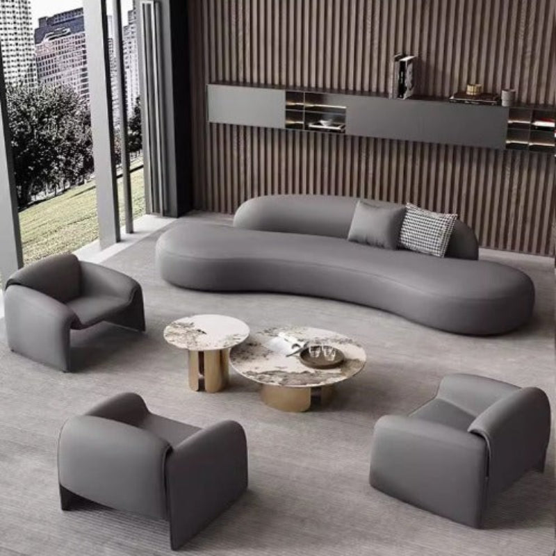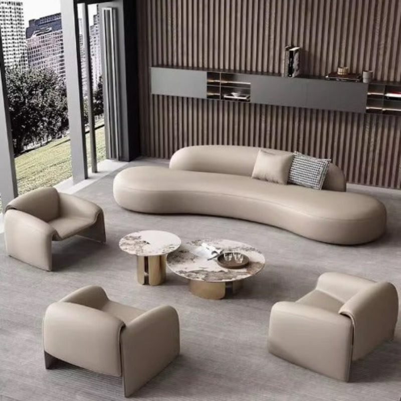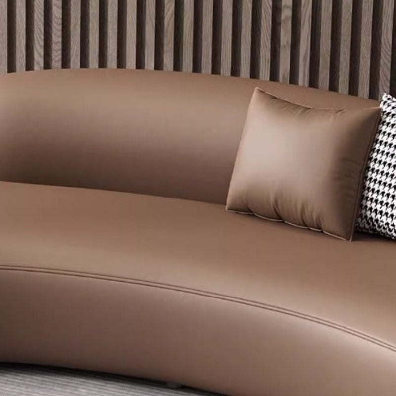 Introducing the epitome of luxury and style: the round curved leather sofa from Nestcraftsg. With its sleek design and supple leather upholstery, this chic piece introduces a cozy yet sophisticated seating arrangement to your living space. Perfect for gathering and relaxing, it adds a touch of elegance that makes it the focal point of any spacing.