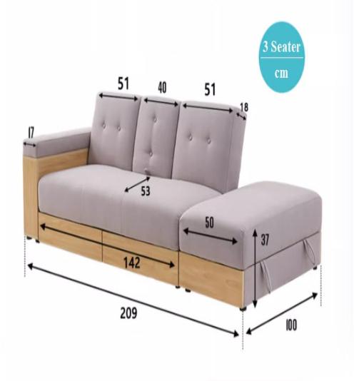 - Product Dimension: 3 Seater: L209 x W100 x H75cm (Seat Height: 37cm)