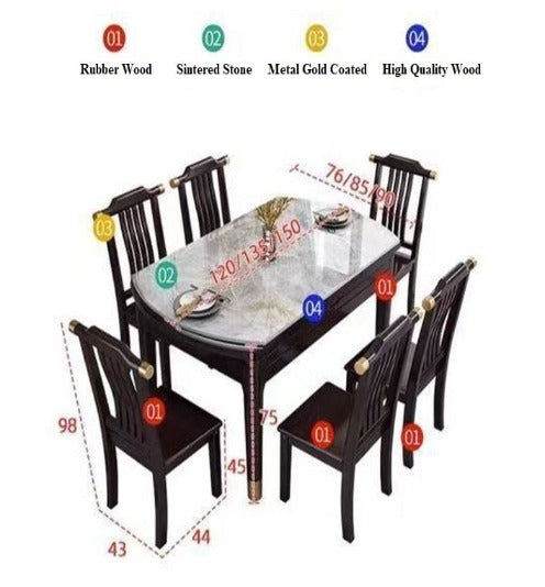 - Material: Table: Sintered Stone Slate + Solid Wood (Rubber) / Chair: Solid Wood (Rubber)