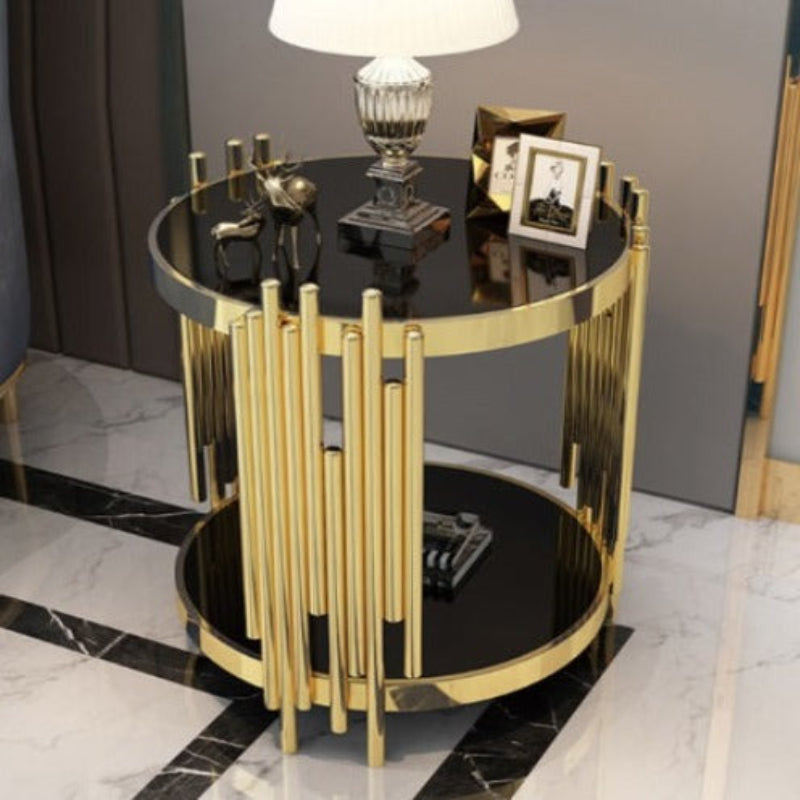 Nestcraftsg: Introducing our Luxurious Tempered Glass Corner Table—a chic blend of modern simplicity and sophistication. This round stainless steel side table is perfect for the living room, bedside, or as a stylish small tea table. Elevate your space with this sleek and versatile addition.