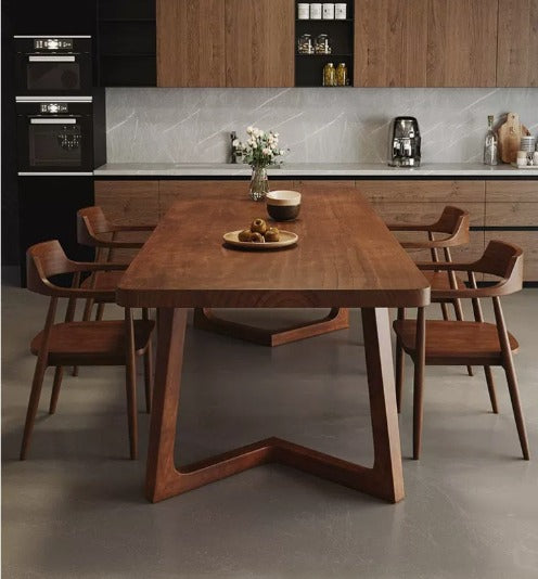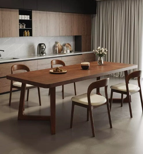 Immerse yourself in modern elegance with our Walnut Dining Table. This minimalist ensemble adds a touch of sophistication to your dining room, creating an inviting atmosphere for memorable experiences. Elevate your home with this refined collection, where craftsmanship meets contemporary style for an exceptional dining setting.