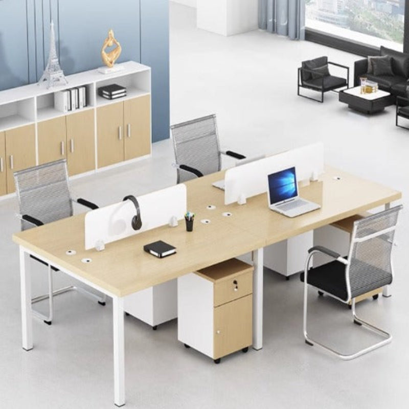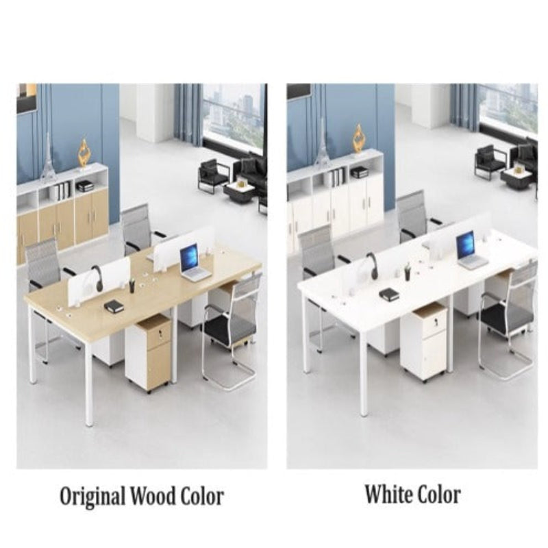 This workstation from Nestcraftsg features a sleek and minimalist desk design, enhanced with modern partitioning elements to create separate areas for each user. The partitions serve to delineate personal space while maintaining an open and collaborative office environment. With its clean lines and functional layout, this workstation offers a stylish solution for today's office needs, promoting productivity and comfort. This workstation does not come with mobile pedestal.