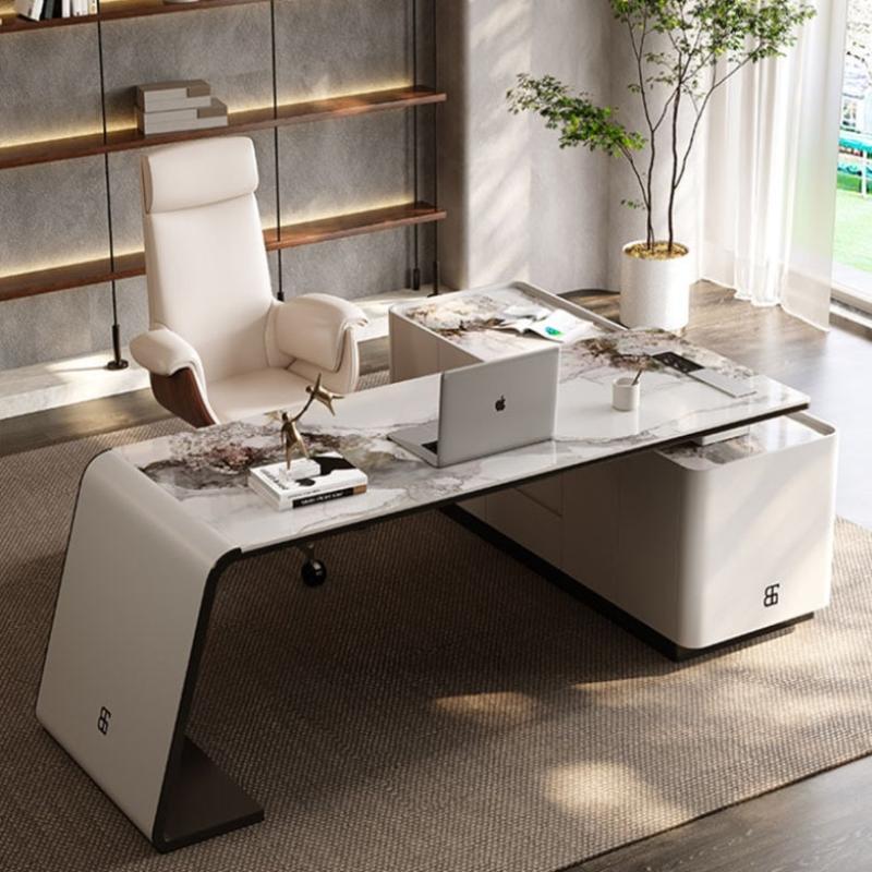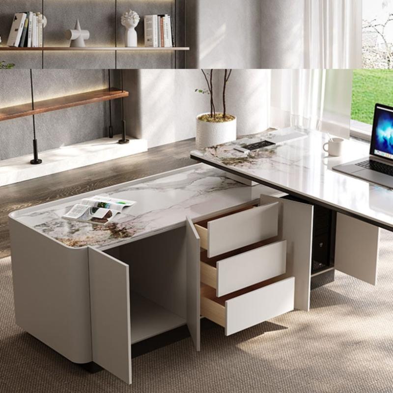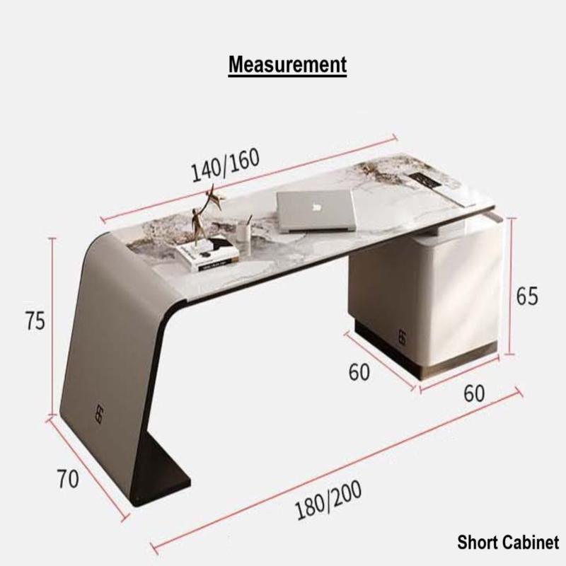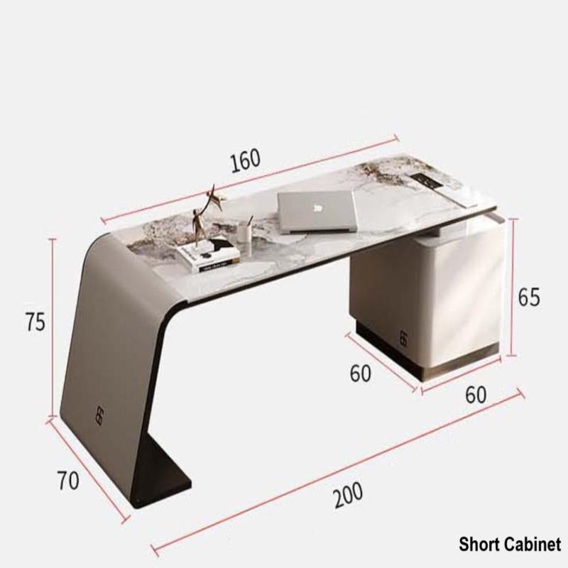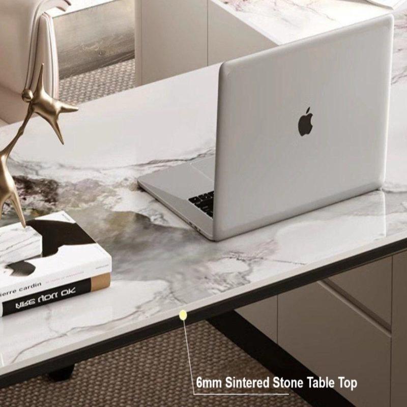 Nestcraftsg: Introducing the Pernelle Sintered Stone Table a perfect blend of luxury and functionality. Crafted from premium sintered stone, MDP, and solid wood, it boasts a scratch-resistant, heatproof, and easy-to-clean surface for enduring performance. The table features built-in cable management, a fireproof and moisture-resistant frame, and rounded edges for safety. Its side cabinet offers versatile storage with three drawers and two spacious compartments, ideal for office essentials and electronics. Available in two colors and customizable configurations, this Italian-inspired table combines elegance and practicality to elevate any workspace.
