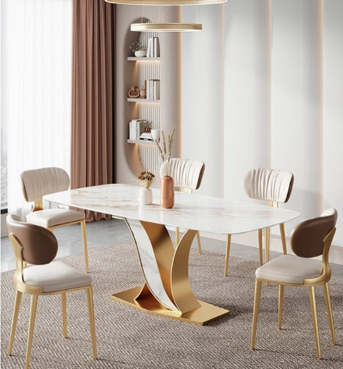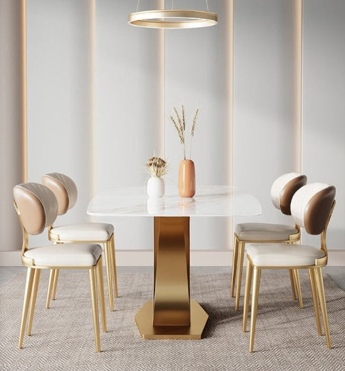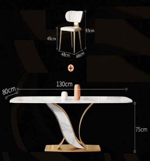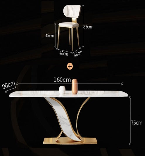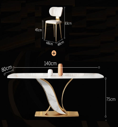 - Material: Table: Sintered Stone Slab + Stainless Steel / Chair: Napa Leather + Sponge + Stainless Steel
