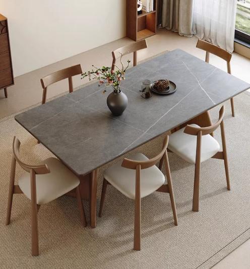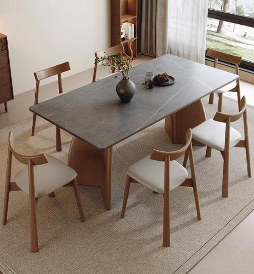 Nestcraftsg: The Retro-Style Solid Wood Dining Table with Sintered Stone Top combines timeless elegance with modern durability. Featuring a solid wood base with walnut finish and a sleek sintered stone top, it offers a stylish, scratch-resistant, and easy-to-maintain surface. Perfect for both cozy dining rooms and smaller spaces, this table adds a refined touch to any decor while ensuring long-lasting quality.