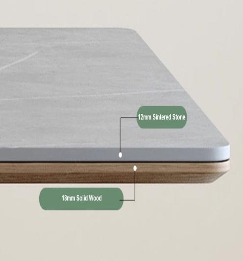 Thickness: 12mm Sintered Stone Slab + 18mm Solid Wood Panel