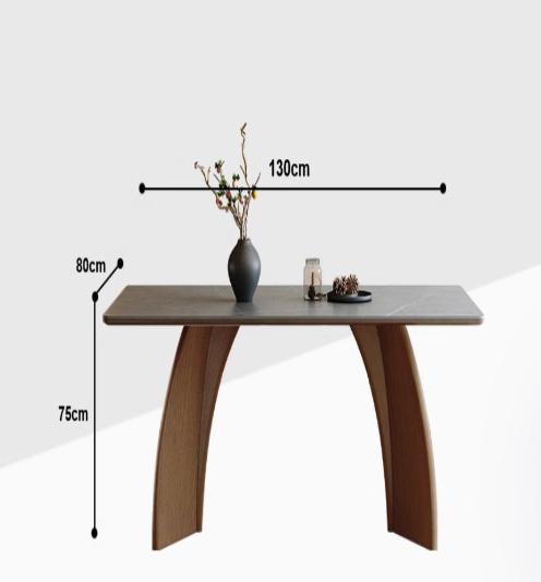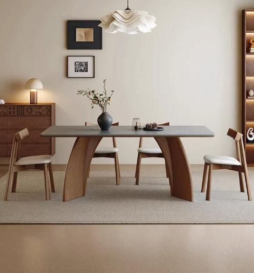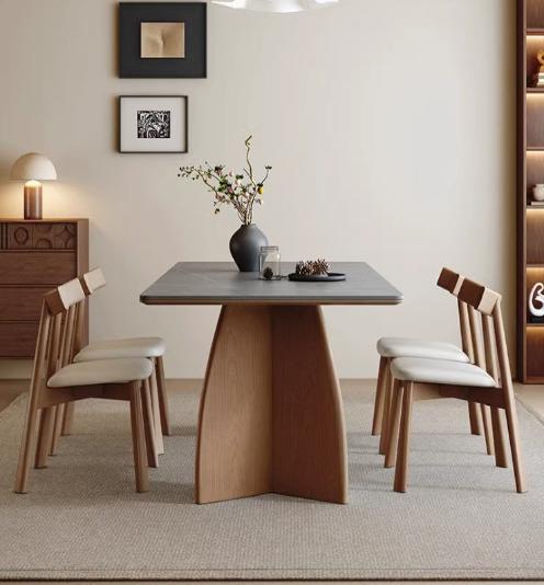 [S45] Retro-Style Solid Wood Dining Table with Sintered Stone Top