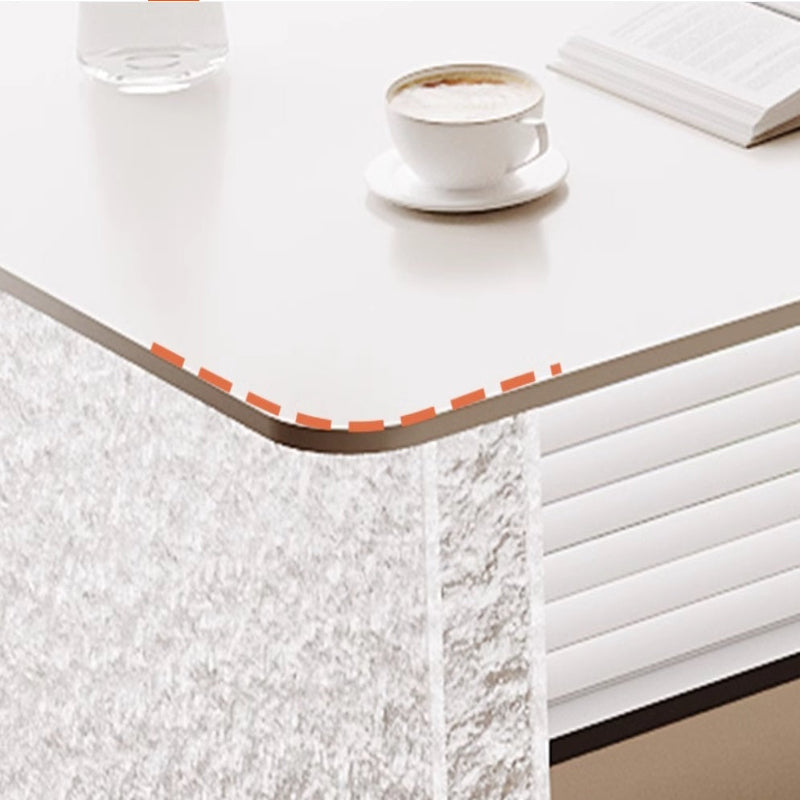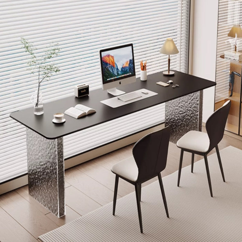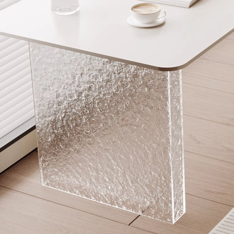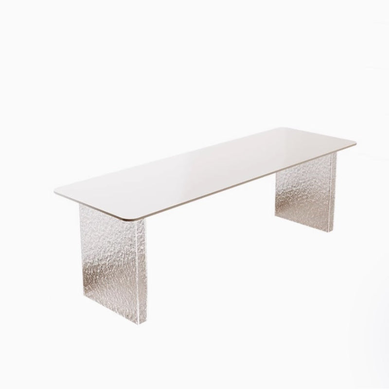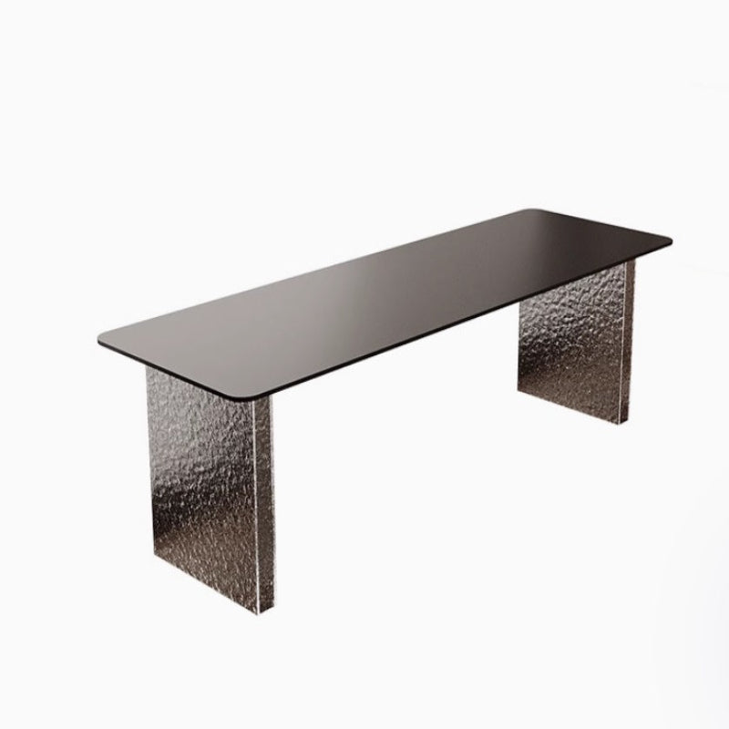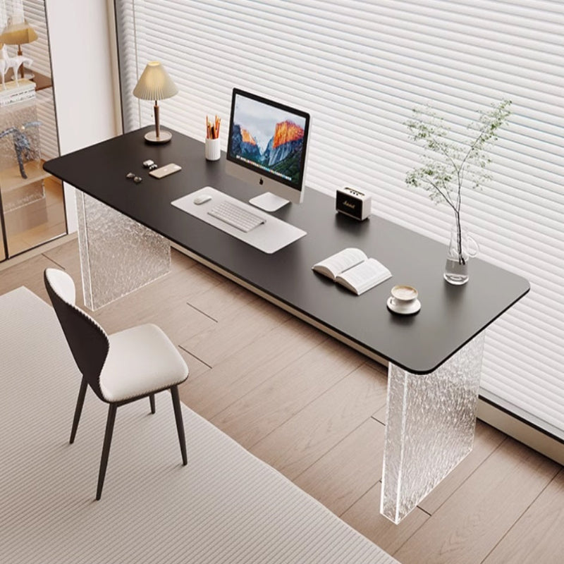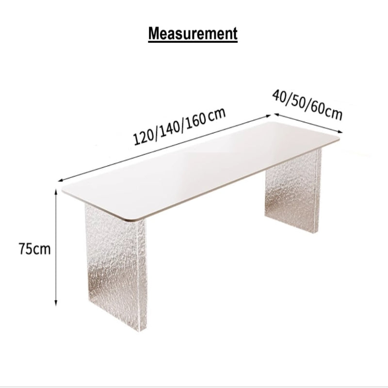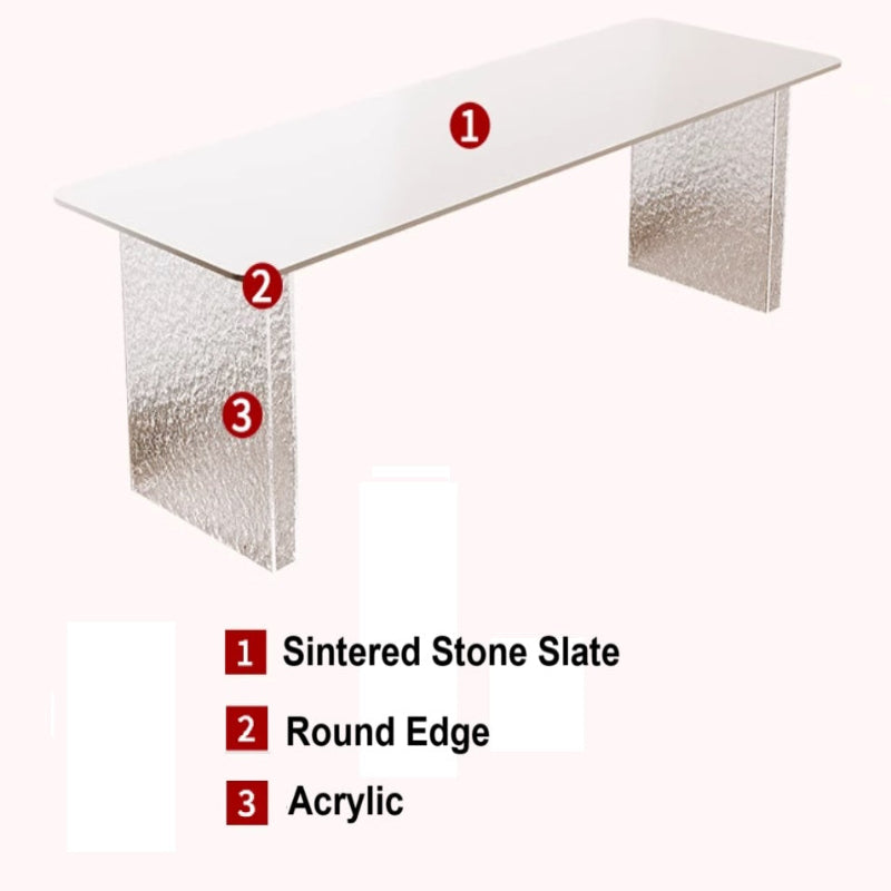 This stylish and modern desk from Nestcraftsg is crafted with a sintered stone slate tabletop featuring a smooth, rounded edge for safety and elegance. The sturdy legs are made from high-quality acrylic, offering a sturdy foundation while enhancing the desk's contemporary aesthetic with a transparent, lightweight look. Designed with functionality and style in mind, this desk provides ample space for work, study, or creative projects, making it ideal for office or home use.