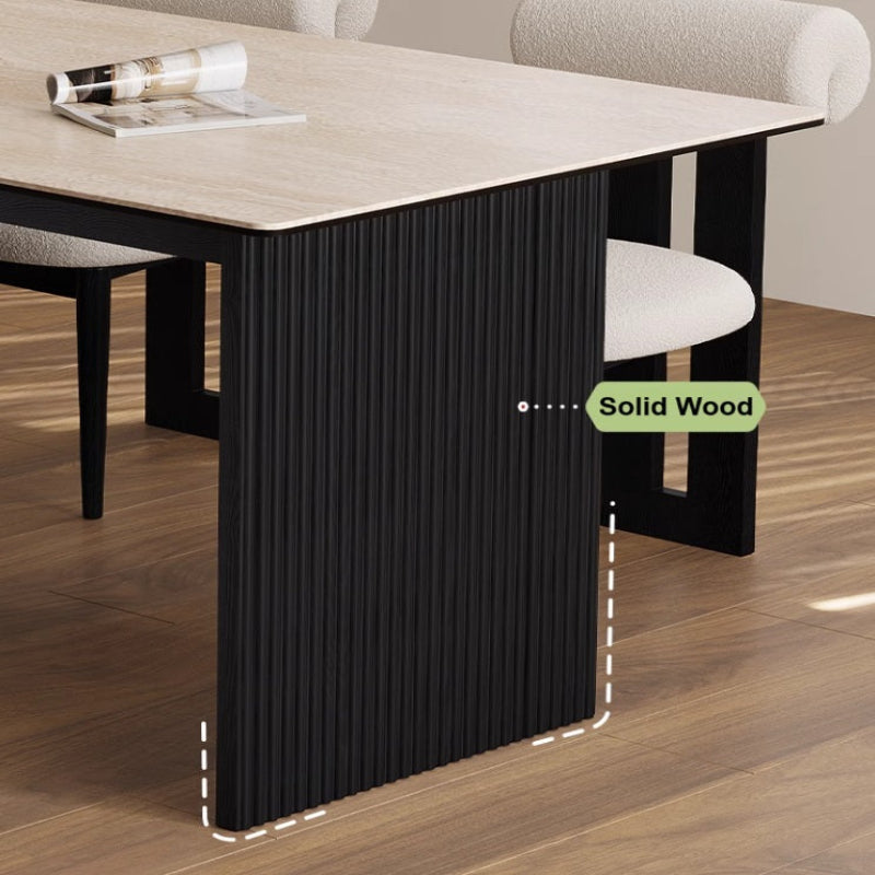 The Coralie Sintered Stone Dining Table combines modern sophistication with timeless European elegance. Featuring an 8mm tempered glass panel over a 6mm sintered stone slab, it offers exceptional durability, scratch resistance, and a sleek, refined aesthetic. The smooth, rounded edges enhance both safety and style, while the solid wood legs provide a sturdy foundation with a warm, natural touch. Perfect for both everyday dining and elegant gatherings.