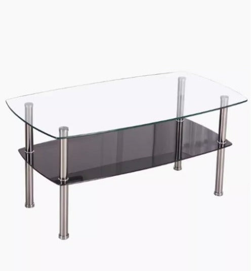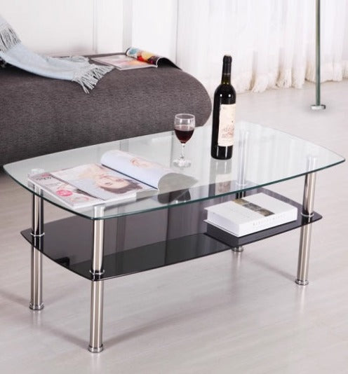 [A28] Simple Modern Rectangular Tempered Glass Coffee Table
