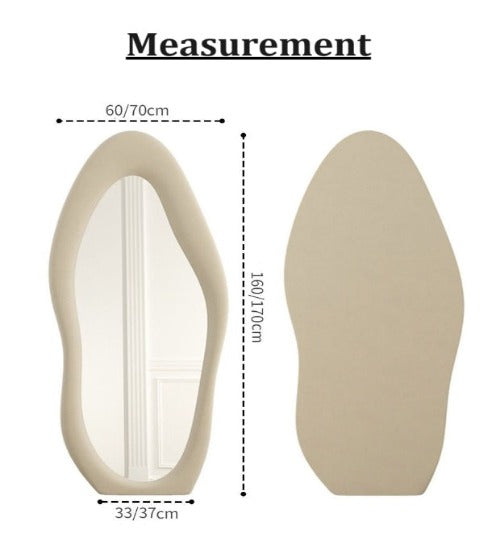 Elevate your home decor with our Viral Mirror – a luxurious full-length floor mirror with a unique irregular shape. Embrace the Instagram-inspired aesthetics as you dress with flair using this chic and trendy statement piece. Perfect for capturing your own distinctive style at home.