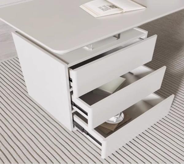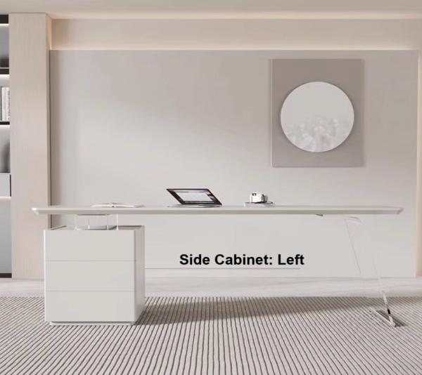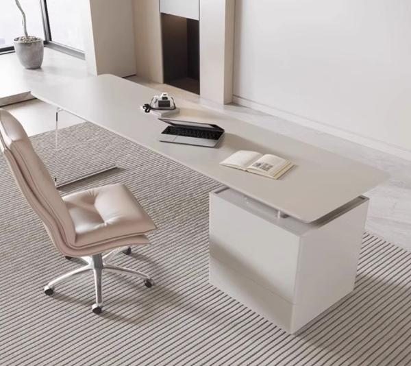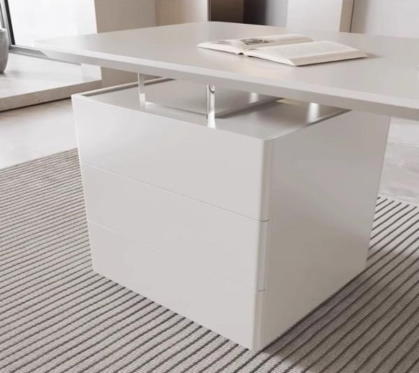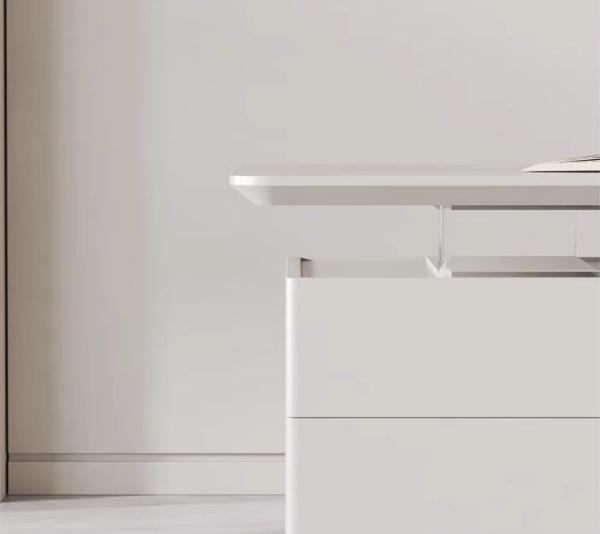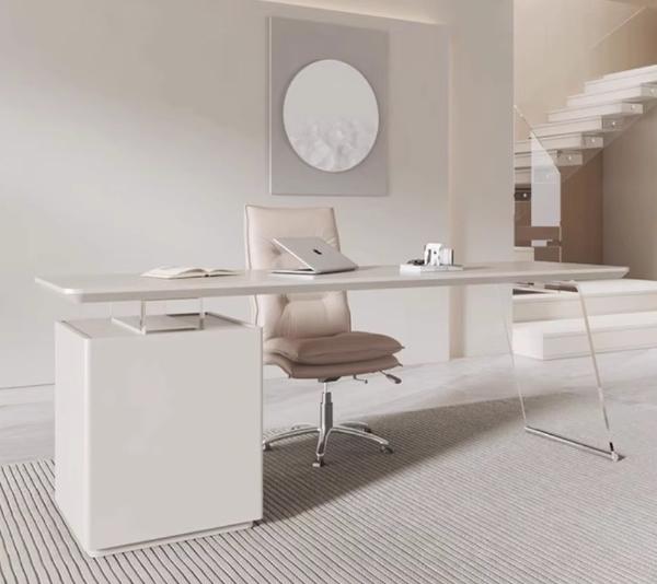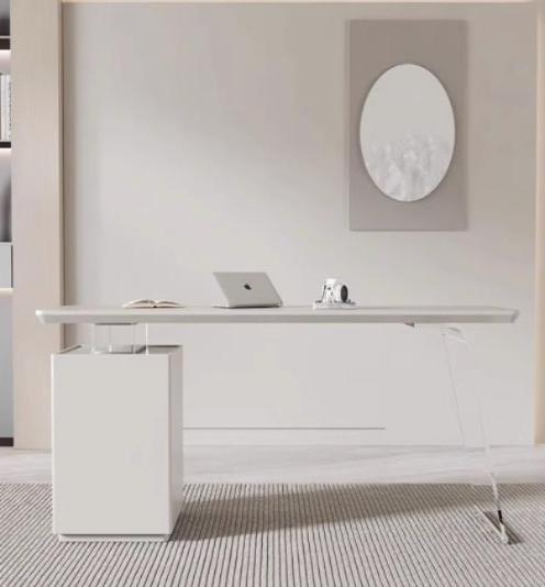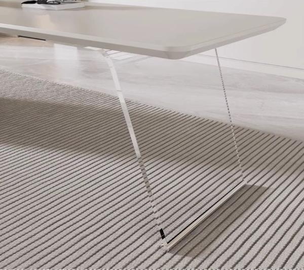 Nestcraftsg: This modern cream-toned acrylic floating desk features a minimalist design and sleek, transparent material that gives it a light, airy look. Its clean lines and subtle elegance make it a perfect fit for contemporary home offices and professional workspaces.