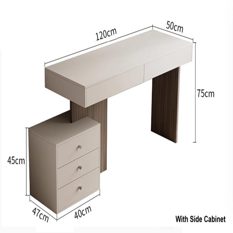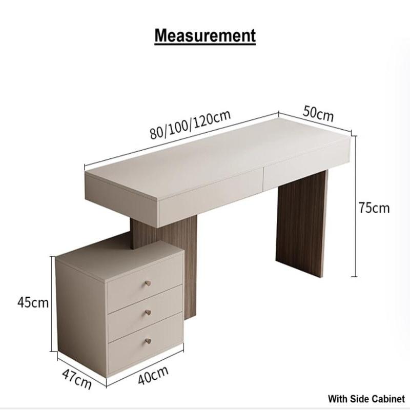 - Product Dimension: Table: L80 x W50 X H75cm / L100 x W50 X H75cm / L120 x W50 X H75cm + Side Cabinet: L40 x W47 x H45cm