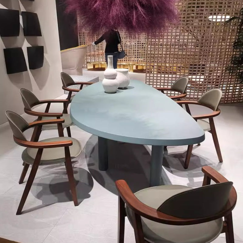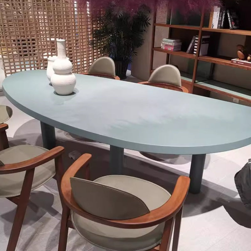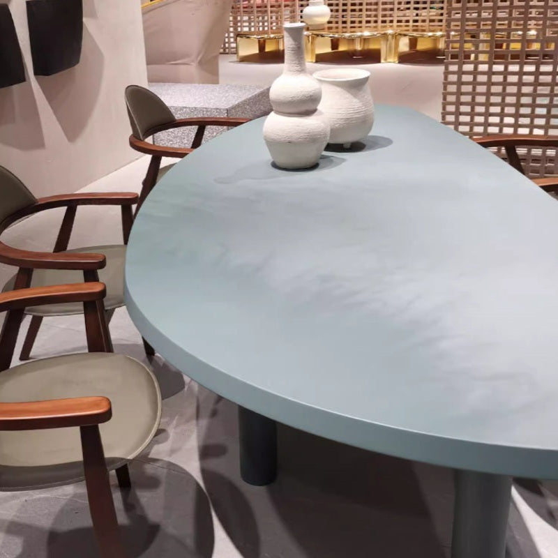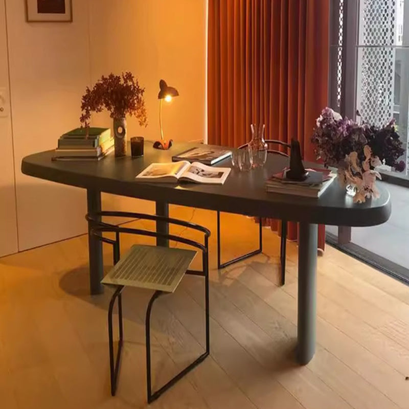 Bring a touch of minimalist charm to your study table with this Delia Oval Solid Wood Study Desk from Nestcraftsg. Featuring a smooth oval tabletop and an irregular, designer-inspired shape, it blends functionality with creativity. The cream-style finish adds a soft, cozy aesthetic, perfect for study room, office or studio. Crafted from durable solid wood, this desk is ideal for use as a computer table, study desk, or small meeting table. Its unique silhouette and warm tones create an inviting atmosphere for work or conversation.