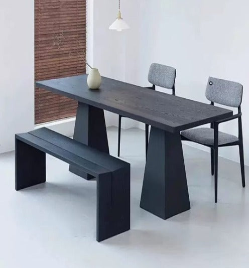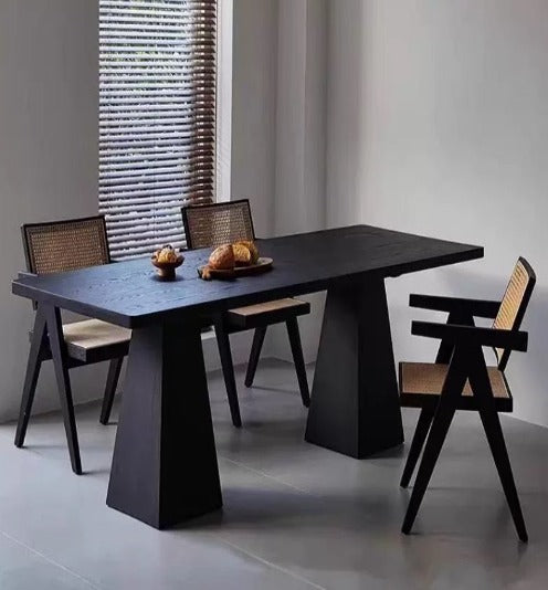 [W15] Wabi-Sabi Inspired Charcoal Black Solid Wood Dining Table